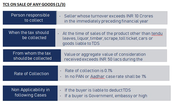 WAY FORWARDSCOPE LIMITATIONWe shall assist in determining the applicability of the above provision, depending on the nature of business and each business transaction;andWe have not considered the current revised rates as proposed by the government in view of the global pandemic COVID — 19;andThe amount on which the tax should be collected and the amount of remittance for each of the transaction.However, for the sake of the completion, the rates w.r.t sale of goods have been reduced to 0.075% for buyer having PAN/Aadhar, for current financial year only